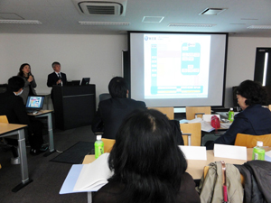 Mr. Hyung Joo Jeon from the Hanyang Cyber University International Cooperation team introduced 4 types of Internet learning developed at his institution such as on-demand eLearning and streaming eLearning as well as content development and support systems for students. The Jikei Group presented the J-Web national examination preparation eLearning system used by 6,000 students which contributes to national examination success rate of approximately 90%.The group also presented school advertising for smart phones and well as the Narikata site, which introduces specialized careers in various fields. Hanyang Cyber University displayed considerable interest in adopting Narikata-style websites for each of its schools’ departments as a public relations strategy.