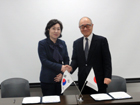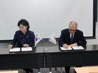 Kuniko Ukifune and Dr. Im sign the renewed partnership agreement