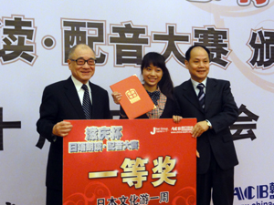 Fudan University Student Xu Jihai smiles after winning the Grand Prize in the Recitation Category and receiving her award from Jikei Group Chairman Kunihiko Ukifune and Mr.Wang. As part of its 10th anniversary celebrations, Jikei Shanghai Center held the 1st Annual Japanese Recitation-Voice Over Contest. The winners were presented with their awards at the official 10th Anniversary Ceremony which took place at the Pullman Shanghai Skyway Hotel on December 23. Jikei Shanghai Center was established as a subsidiary of Jikei Inc. in 2002 and began as Han Yuan Mandarin School, teaching Chinese to staff from Japanese companies posted … Continue reading