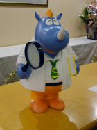 Art Director Toshiya Akaiwa then discussed the birth of his creation, Professor Sai (Professor Rhinoceros), the Science Club’s mascot. Revealing the mystery of Professor Sai’s birth 20 years ago, Akaiwa said, “I chose a rhinoceros to be the mascot as a play on the words ‘science’ and ‘saino’ (talent). Professor Sai holds a book in his left hand and a magnifying glass in his right hand. These each represent “knowledge and love of learning” as well as “wisdom and curiosity.”