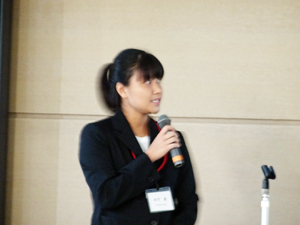 Ms. Ai Matsushita, a student in the Physical Therapy Department at the Osaka College of Medical and Welfare, spoke about her experiences studying English in Florida. Ms. Matsushita was a runner up in the Jikei Group of Colleges English Speech Contest and won a five-week trip to study English at the University of West Florida in the city of Pensacola, Florida. During her presentation, she spoke about the differences between education in the United States and Japan and the energy she received from the experience as well as the kindness physical trainers have for their clients. Ms. Matsushita related her thoughts and expressed her gratitude in English, which the audience received with a warm round of applause.