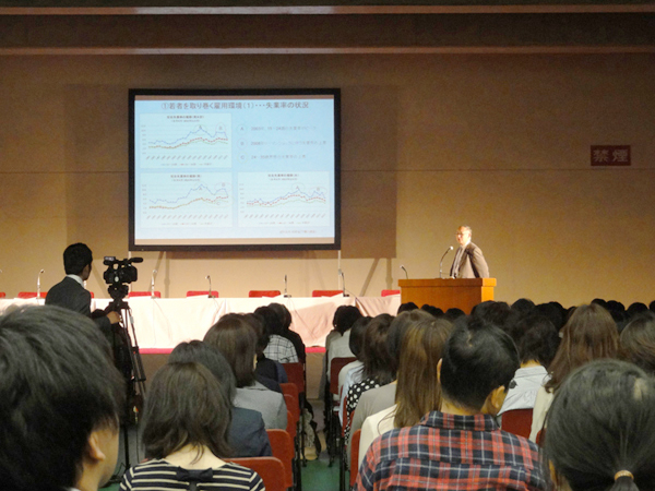 A special lecture entitled “The Current Job Market for Young People: Improving Skills and Promoting Employment for Young People” was given by Seiji Tanaka, the General Affairs Manager of the Japan Institute for Labour Policy and Training in the sub hall.